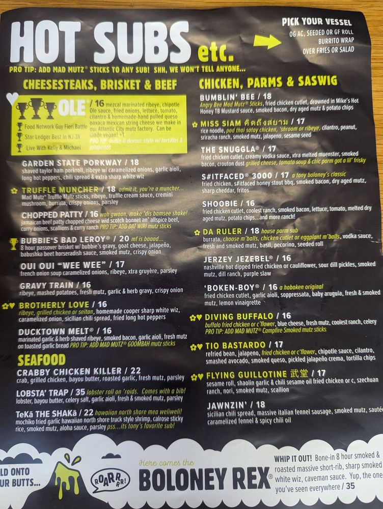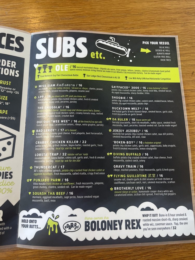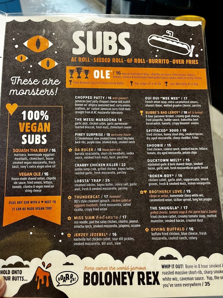 Introducing the menu at Tony Boloney’s - Atlantic City, a casual spot with a wide range of options for all types of diners. From the Belmont Caesar salad to the Surfing Wedge and Smoki Greens, the salads are bursting with flavor and fresh ingredients. The hand-cut fries are a must-try, with unique options like the Barbarian and Butterbattered fries. The Big'ol Subs & Wraps menu offers creative twists on traditional favorites, such as the Meathead Parm and BuffaloBlue subs. Customers praise the high-quality ingredients and creative takes on Philly-style subs and pizza. With friendly service and a laid-back atmosphere, Tony Boloney’s is a hotspot for those looking for a unique dining experience in Atlantic City.
